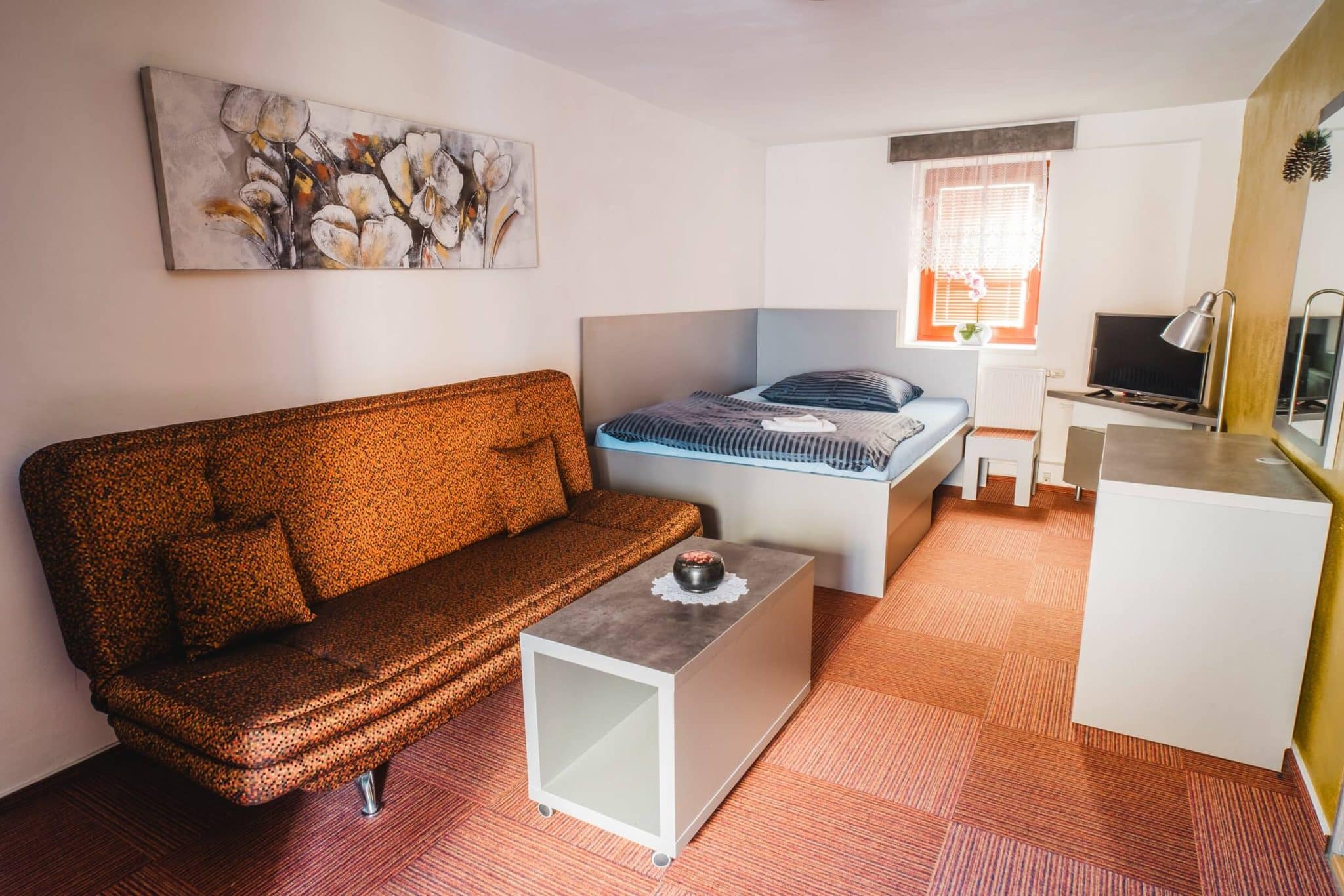 1 lůžkový útulný nekuřácký pokoj. Hosté mají k dispozici samozřejmě vlastní koupelnu s wc, umyvadlem a sprchovým koutem. Na pokoji mohou hosté k pracovním účelům využít pracovní stůl či relaxovat u satelitní TV. Hosté se mohou občerstvit i z minibaru na pokoji.