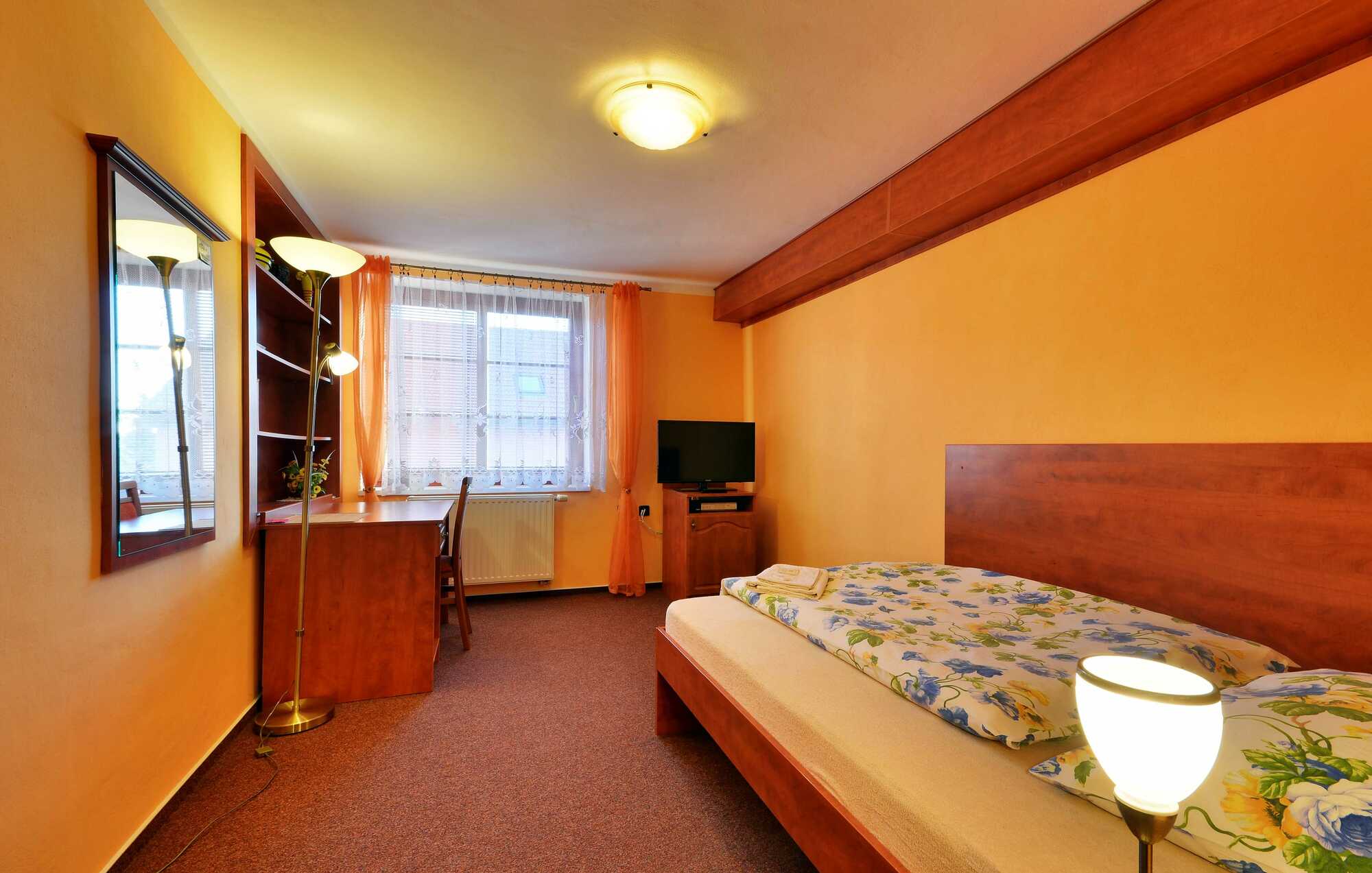 1 lůžkový útulný nekuřácký pokoj. Hosté mají k dispozici samozřejmě vlastní koupelnu s wc, umyvadlem a sprchovým koutem. Na pokoji mohou hosté k pracovním účelům využít pracovní stůl či relaxovat u satelitní TV. Hosté se mohou občerstvit i z minibaru na pokoji.